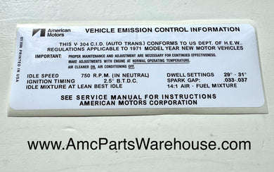 1971 AMC 304 V8 ENGINE EMISSIONS DECAL AUTO