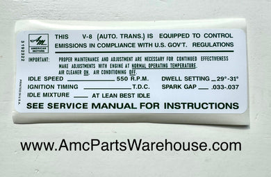 1969 AMC and RAMBLER V8 EMISSIONS DECAL with AUTO TRANS