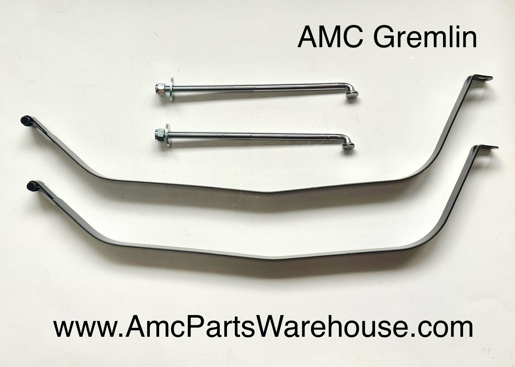 1970-76 AMC Gremlin Gas Tank Straps Set with Hardware. Same exact original fit as original straps. All included as shown. Brand New.